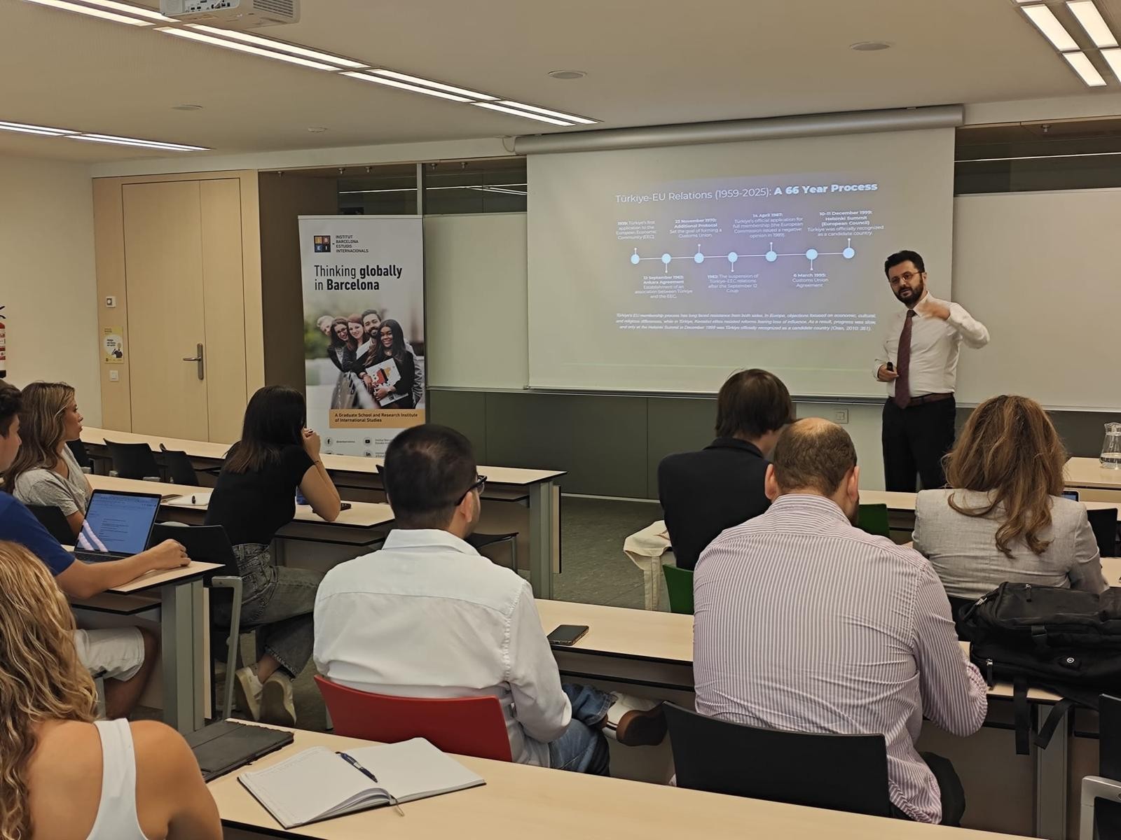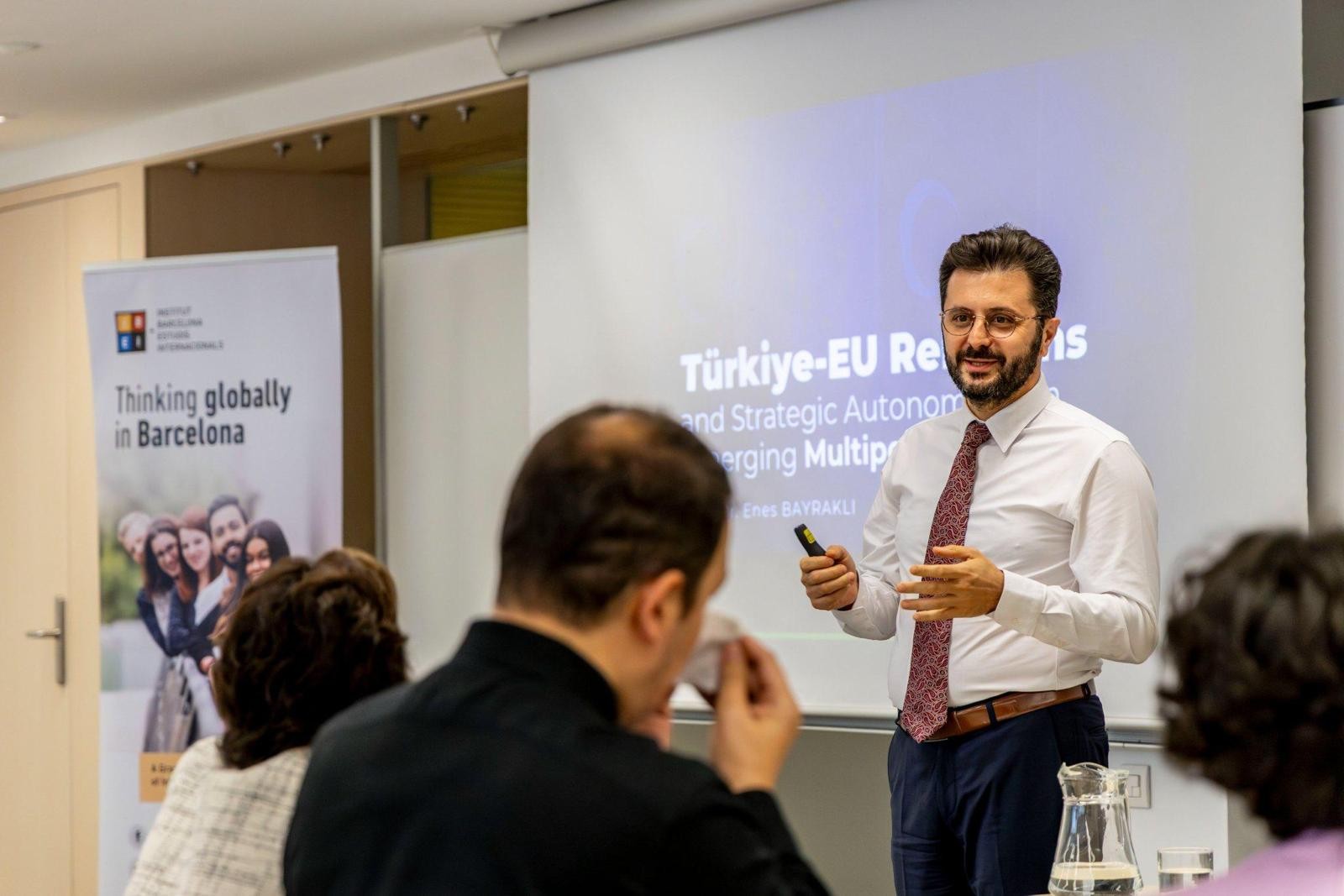 Prof. Dr. Enes Bayraklı, “Türkiye-EU Relations- and Strategic Autonomy in an Emerging Multipolar Wolrd” (Türkiye-AB İlişkileri ve Çok Kutuplu Dünyada Stratejik Özerklik) başlıklı sunumuyla, Türkiye ile Avrupa Birliği arasındaki ilişkilerin tarihsel arka planı, güncel yönelimleri ve çok kutuplu dünya düzeninde stratejik özerklik bağlamındaki yeni dinamiklerini inceledi.
